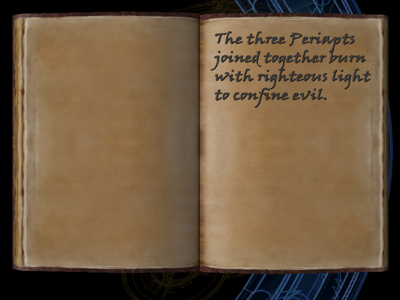 | 51/53 | (32) The three Periapts joined together burn with righteous light to confine evil. (Library) | Vault of Trophies | screenshot | |