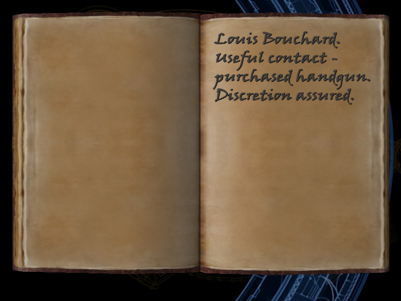 | 2/53 | (36) Louis Bouchard. useful contact - purchased handgun. Discretion assured. | Margot Carvier's Apartment | screenshot | |