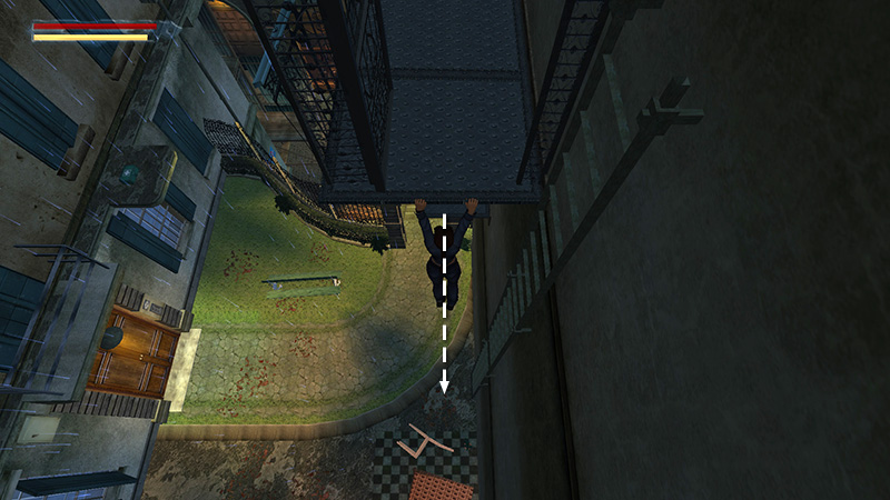 NOTE: If you did miss a pickup, everything should still be accessible. However, if you return to the rooftop and shimmy along the ledge to the gantry gate, Lara will be unable to grab the ladder and climb down. You'll need to safety drop to the ground instead. (screenshot)