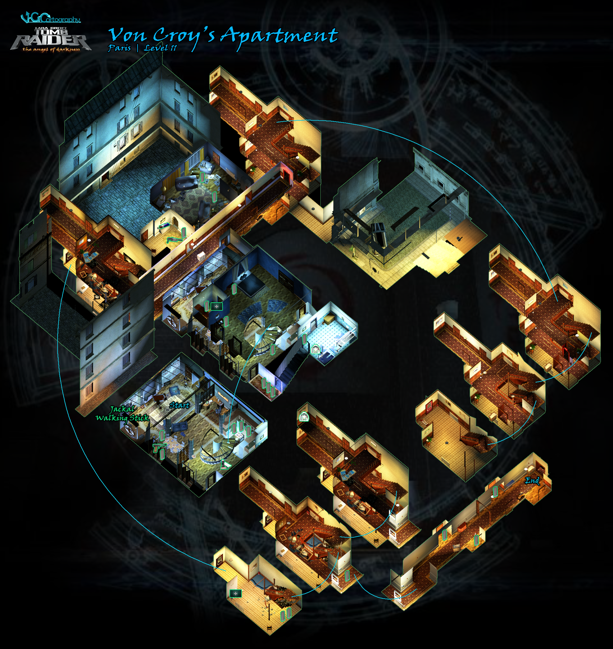 *NOTE ON LEVEL MAPS: VGCartography's Angel of Darkness maps follow a slightly different level-numbering convention than I do. You'll notice most of the Parisian Ghetto-adjacent areas on the same large map. Later, the elemental levels off the Hall of Seasons are included on the same map as the hub level. Visit VGCartography on DeviantArt and follow on Twitter/X and YouTube for more fantastic game maps.