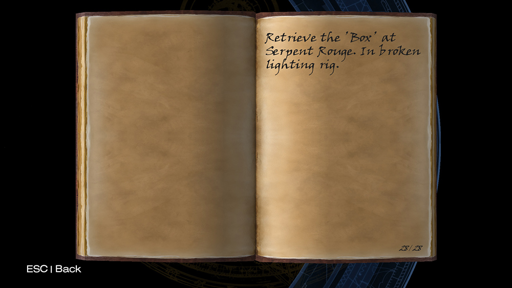 | 28 | Retrieve the 'Box' at Serpent Rouge. In broken lighting rig. (Pierre or Bernard) | Parisian Ghetto | screenshot | |