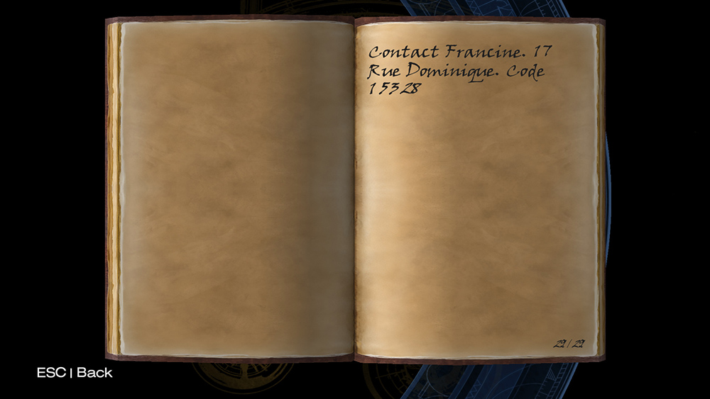 | 13 | Lux Veritatis try to suppress the Cabal of the Black Alchemist from the 1300's onwards. | Margot Carvier's Apartment | screenshot | |