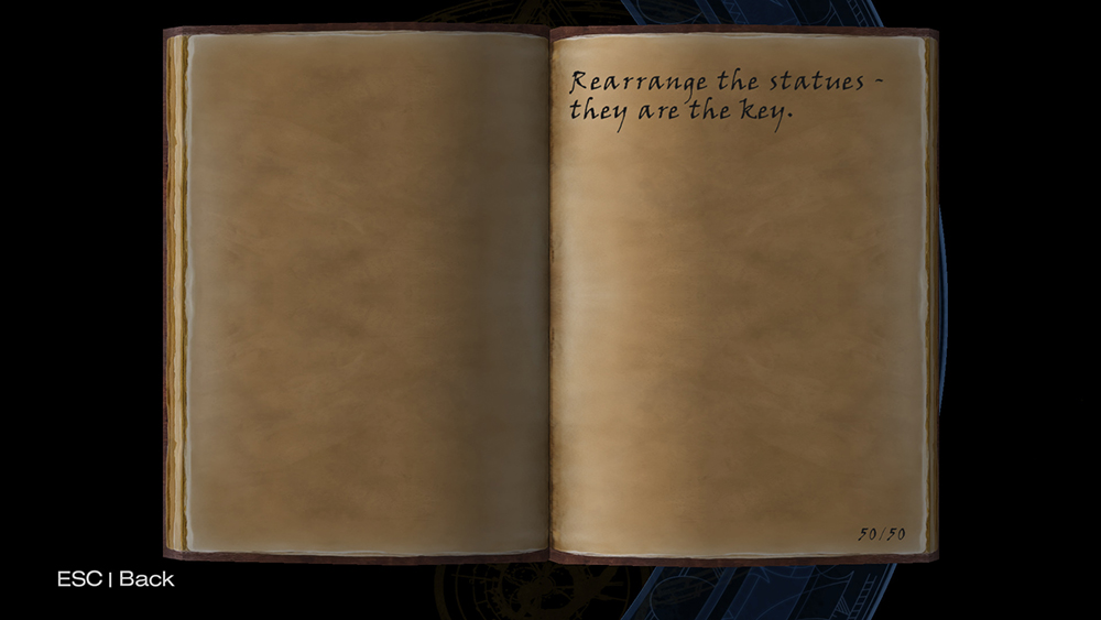 | 50 | Rearrange the statues - they are the key. (Entering the flooded room with statues) | Vault of Trophies | screenshot | |