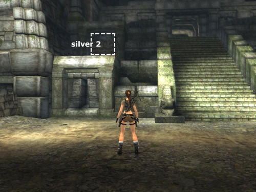 In the full game there are 2 hidden rewards here, both gold and silver. To get the gold, you'll need to fiddle with the door mechanism a bit more. Assuming you're still working with 2 cages and Lara herself as the third weight, leave the cage on the pad on the right (i.e., right when facing the exit). Move the cage off the center pad and then step on the left pad. When both side pads are depressed but not the center pad, the door closes. Move the cage back onto the center pad. The mechanism starts to work but can't raise the door with the left gear locked in place.