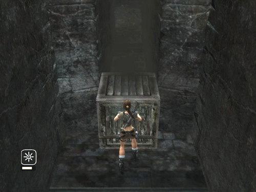 OPENING THE EXIT: The way out is on the high ledge at the far end of the room. To open it you must activate the 3 square pressure pads on the long ledge near the entrance. The left and right pads control the huge gears on each side wall. The center pad actually raises the door. All three pads must be depressed at the same time for the mechanism to work. You'll need 2 of the 3 movable cages. Lara will press the third pad. (This series of screenshots shows the entire process. There's also a video tutorial detailing everything from entering this room to leaving with the 3 available rewards.)