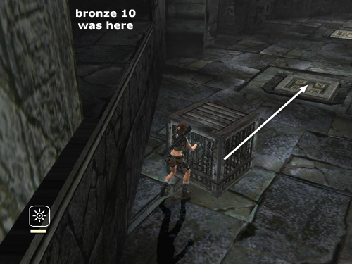 The second cage you'll use is already on the upper level; it's against the back wall, on the left when facing the entrance. Go past it and climb into the alcove next to the vertical chain to find a bronze reward (10/10).
