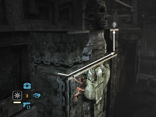 Climb around the corner to the right. Jump to grab the ledge above. Jump again to pull up.