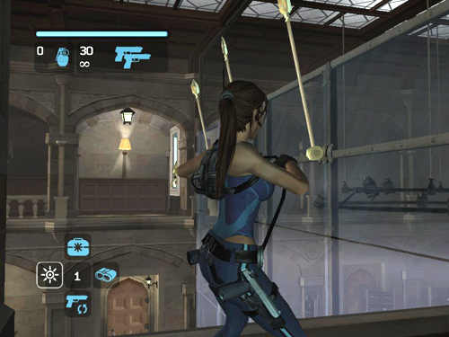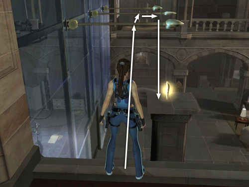 NOTE: You can cross the bars more quickly by jumping before Lara swings all the way around. This is a little tricky, though. You'll need to press Jump just a fraction of a second after Lara grabs each bar.
