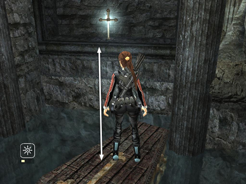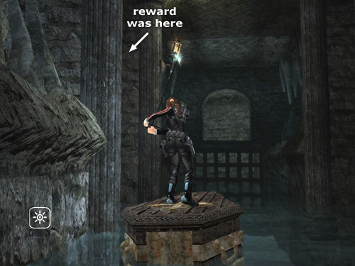 When you've pulled the coffin as close as possible, release the cable and jump up onto the ledge. Grab the reward and quickly jump back down onto the coffin.