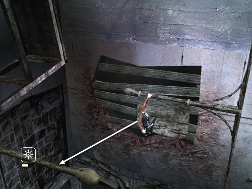 If you miss and Lara falls into the pit, use the handholds shown above to climb out. Then repeat the whole sequence.