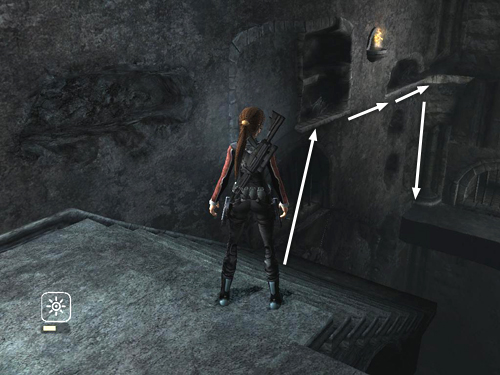 IMPORTANT: The way the next checkpoint is positioned relative to the nearby reward is problematic. The checkpoint registers just before you get bronze #6. If Lara subsequently dies, the game reloads at checkpoint 7, placing her in a position where you can no longer get that reward. It's probably a good idea to save manually after checkpoint 6. Then if Lara dies anywhere in this room, reload the checkpoint 6 save, get all three bronze rewards (4-6) again and continue to checkpoint 8 before saving again. If you're playing the PC game and have already run into this problem, you're welcome to download my savegame file from checkpoint 8. Instructions for downloading and installing Legend saves are here.