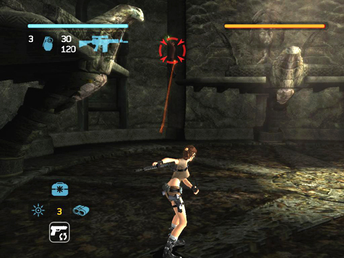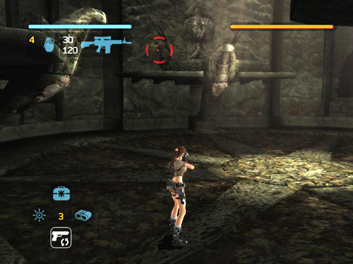 NOTE: If you're playing on the Hard (Tomb Raider) difficulty setting, be sure to equip the grenade launcher as your secondary weapon for this fight. Then, when you run out of hand grenades, you'll still have enough firepower to bring Rutland down before he has a chance to heal himself. Special thanks to Treeble, who I believe discovered this excellent strategy, and to Robert, who first brought it to my attention. [Return to the Ghana Walkthrough] Copyright © 2006- - Stellalune (). All rights reserved. The screenshots and videos included here were made using Fraps. Feel free to copy or print this walkthrough for personal use. By all means, share it with friends, but please include this credit line so people can send me their feedback. No part of this walkthrough may be reproduced on another site without permission. Follow this link for details about this site's advertising and privacy policy. |