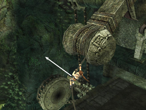 Climb almost to the top of the rope and turn so the open drawbridge is on Lara's right.