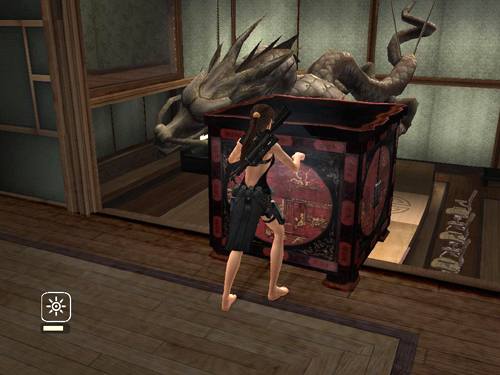 This sequence is also shown in a gameplay video. After smashing the window with the dragon statue, as described in the previous set of screenshots, climb up into the opening and follow the hallway to the small room at the end.