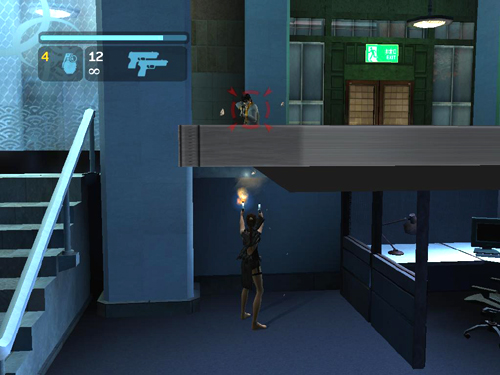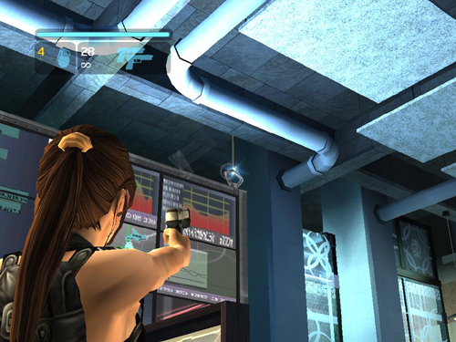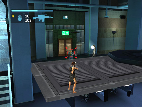 Or, if you prefer a cautious approach, hide under the screen and shoot through the crack between the screen and the floor. Lara may take a few hits this way but not many.