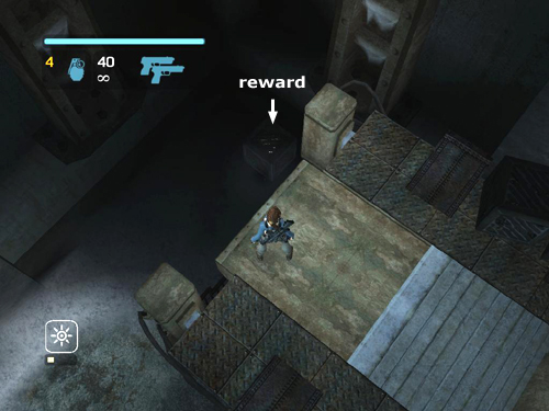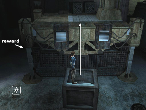 Drop down into the dark corner behind this platform to find a wooden crate containing a bronze reward (3/5).