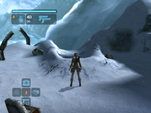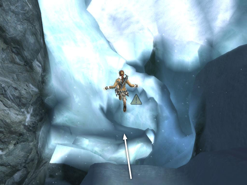 Slide to the end of the slope where the ice wall was and jump the gap to land on yet another slope. This one carries Lara down to the right.