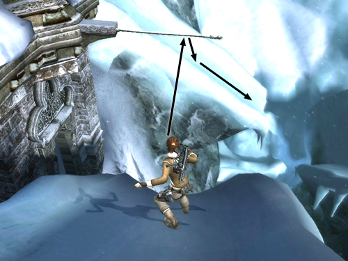 NOTE: If you're having trouble making Lara swing around the pole immediately after grabbing, it helps to move the camera behind her as she slides. Then she should jump and grab the pole more securely.