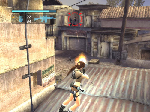 If Lara falls off the roof, you could use the drainpipe on the building where the first sniper was standing (shown in the fourth and fifth screenshots above) to climb back up. However, if there are still men on the opposite roof, they can hit her as she climbs. You're probably better off on the ground using the buildings for cover. [Return to the Peru Walkthrough] Copyright © 2006- - Stellalune (). All rights reserved. The screenshots and videos included here were made using Fraps. Feel free to copy or print this walkthrough for personal use. By all means, share it with friends, but please include this credit line so people can send me their feedback. No part of this walkthrough may be reproduced on another site without permission. Follow this link for details about this site's advertising and privacy policy. |