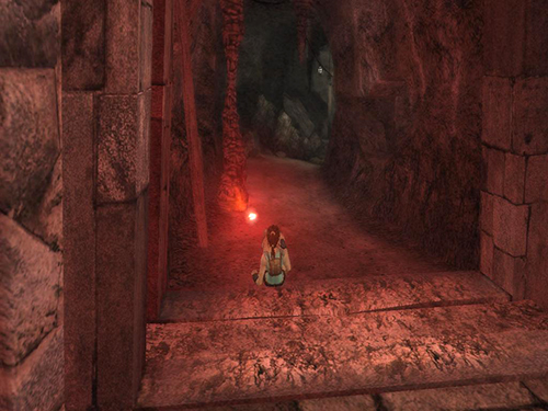 At this point, ignore Amanda. There is no need to trigger the scene where she is creaming and Lara saying "What's happening, Amanda, can you hear me?" Just continue through cave where you need to go.
