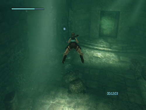 If you followed this strategy and died at the checkpoint, continue on without swimming up for air. If you move fast, you will be able to activate all the blue lights, and Lara will only lose a small fraction of her health. This is still better than losing time by going to the surface.