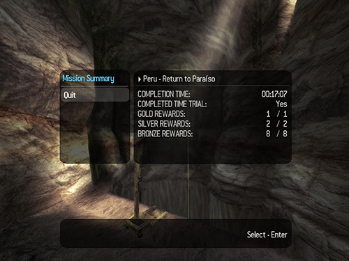 There are no specific tips for this part. The only things I can suggest are to pick up and use health packs along the way, since you can lose a lot of time if Lara dies, and shoot all the enemies as quickly as possible. Do not try and get ahead of them; you must kill them all in order to advance. There are only three checkpoints in this area. One at the beginning, one at the bridge and the last one before the end of the run. Dying here can cause you to lose a lot of time, so obviously you should try not to do so.