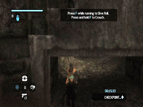 NOTE: According to the speedrunners at tombrunner.net, swan diving is the fastest way to cover flat ground movement type in Anniversary, but rolling is fastest in Legend. Either method beats Lara's slow run in both games. –Stella