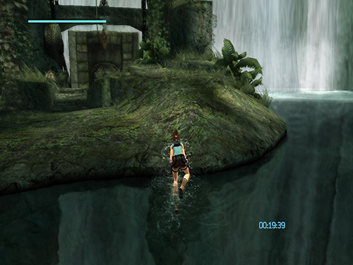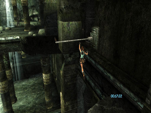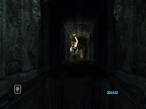 In the area with the cistern and sluice gate, do the pressure pad sequence as described in the main walkthrough, but when you come to the part where you use the grapple to pull out the sun symbol, pull just until the symbol starts to extend. Before the cut scene starts, release the cable and jump/dive off the ledge. Lara will die, but CHECKPOINT 11 should register before she does, and the game will reload, placing her at the grate beyond the flooded room. At this point, do not turn around. Instead draw pistols and start firing. While shooting, do a backward roll (Back + Duck) and Lara will fall back and grab the ledge at the bottom. This is much faster than climbing down the ladder and ledges. (Thanks to Nick for these tips.)