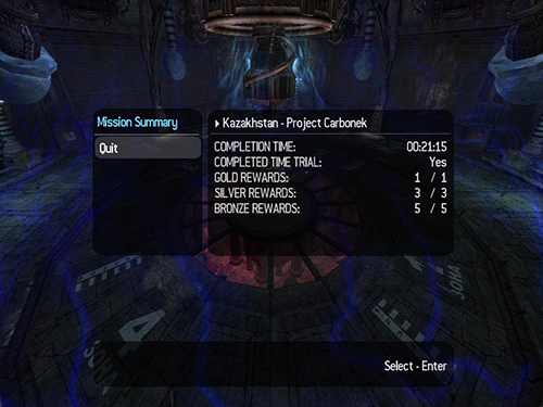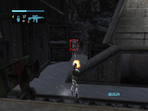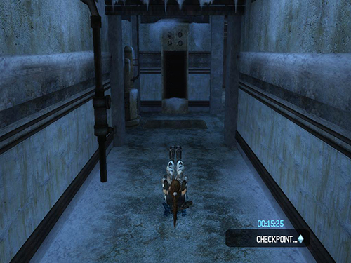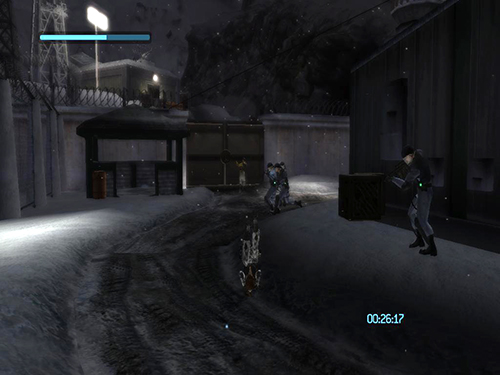 For this level it helps to have unlocked the unlimited ammo cheat for at least one weapon. You can avoid many of the enemies in this level, but you will have to fight some of them. The ammo cheats help. If you are playing the Time Trials in order, you'll now have unlimited ammo for the SMG, Assault Rifle and Shotgun. Take the one you like the best or along the way you can switch between weapons; it is your choice.