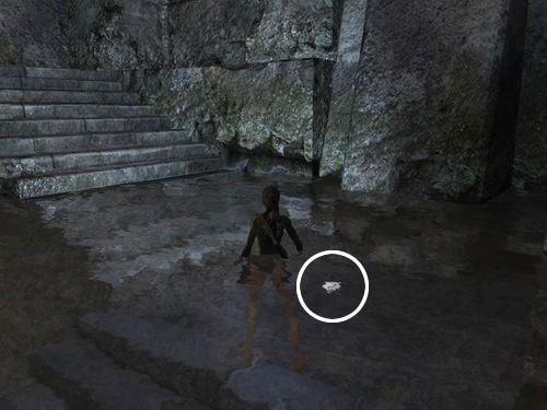Swim to the right side of the pool (i.e., right when Lara's back is to the exit from this area) and climb out of the water on the partially submerged stairs. On the landing, in waist-deep water, is another treasure (16/26). (Check this screenshot if you need a visual.)