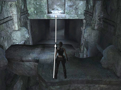 Before going on, make a few pickups around the room: There's a health potion and a breakable jar with a treasure (30/50) just to the left of the entrance (i.e., left when Lara's back is to the door).