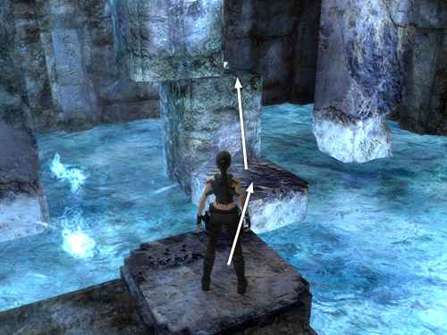 NOTE: If you're having trouble jumping from column to column, understand that it doesn't matter how Lara is positioned on the column where you start. The important thing is to point the camera toward the column you want her to grab. Then just press Forward + Jump and she'll do it correctly.