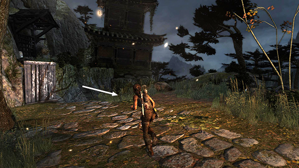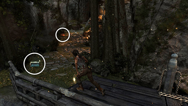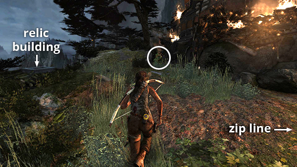 NOTES: You can also obtain this relic without going all the way out to the ledge with the food cache and lantern. Just follow the path from the open area at the base of the zip line down to the west to reach the building where the relic is hidden. (screenshot)
