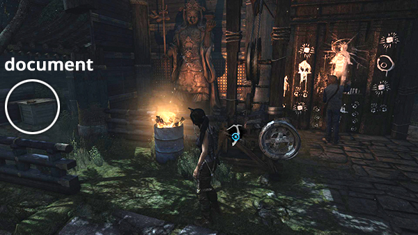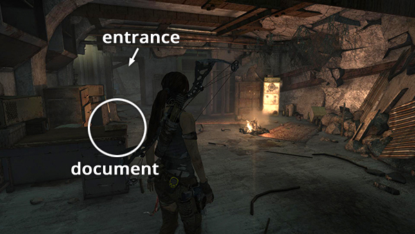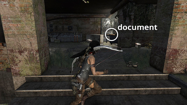 Unlike most documents, this one is not actually discovered in book form; rather, you receive it automatically during the cut scene in the ancient tomb. See here for details. You can't miss it, but for the sake of completion, I've noted it as document #3 on the level map. (Click screenshot to enlarge.)