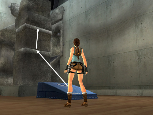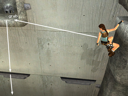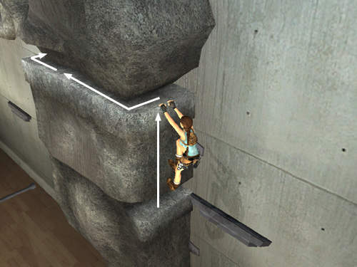 Climb around to the left. Move the camera behind Lara if necessary and then jump back . . .