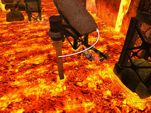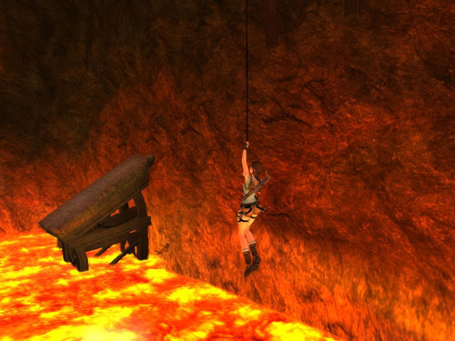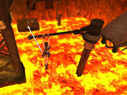 Adjust the length of the cable if necessary so Lara is hanging a few feet above the lava (as shown above).