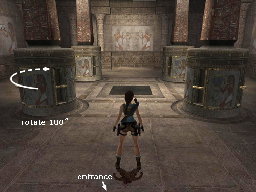 NOTE: You could also solve the puzzle by turning the front right and back left cylinders. It doesn't matter which way or in which order you turn them, as long as you turn one, then the other, 180 degrees. [Return to the Sanctuary of the Scion Walkthrough] Copyright © 2007- Stellalune (). All rights reserved. The TRA screenshots included here were made using Fraps. Feel free to copy or print this walkthrough for personal use. By all means, share it with friends, but please include this credit line so people can send me their feedback. No part of this walkthrough may be reproduced on another site without permission. Follow this link for details about this site's advertising and privacy policy. |