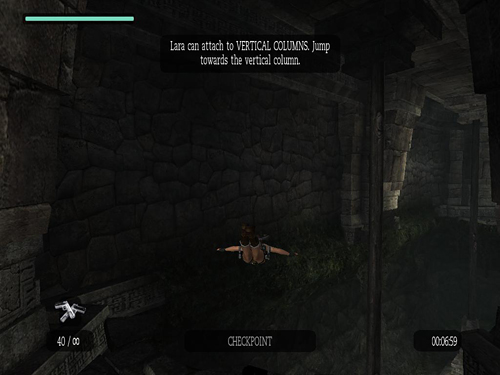 Time Limit: 7:00 At the beginning, do not let Lara grab the wooden column. Use the "Swan Dive Jump," or running swan dive, in order to save some time.