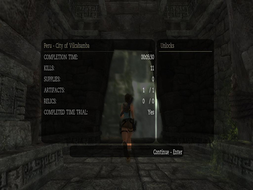 Time trial walkthroughs copyright © 2012 Eldin Mostic. Stella's Tomb Raider Site copyright © Stellalune (). All rights reserved. The TRA screenshots included here were made using Fraps. Feel free to copy or print this walkthrough for personal use. By all means, share it with friends, but please include this credit line so people can send me their feedback. No part of this walkthrough may be reproduced on another site without permission. Follow this link for details about this site's advertising and privacy policy. .