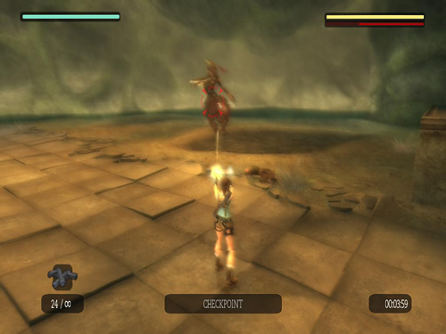 If you've been doing the time trials in order, the best weapon to use here is the Dual 50 Caliber Pistols, and you should have unlocked the cheat for infinite 50-caliber ammo. Turn it on. You know the strategy here. Just stay focused, use a medpack or two if necessary, and don't let the centaurs turn Lara into stone because that way you will lose time.