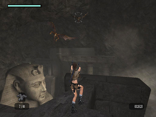 The best weapon to use when fighting the flying monsters is the 50 Caliber pistols. Do not run away from them. Try to kill them as they approach. They can throw fire and they can grab Lara, so one bad move and she is dead.
