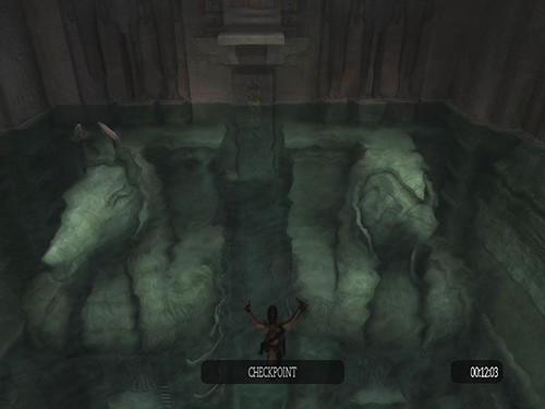 After raising the water to the highest level, exit this area into the final hall. "Swan Dive Jump" through it and get ready for some action.