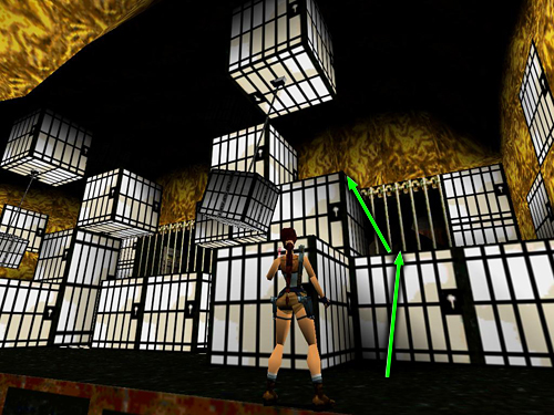 A variation on the basic missing-monster bug occurs when you explore the level in a particular sequence. The end result is that the bird monster is created partway through, but the rear wall of its cage remains solid so the monster can't leave. This means Lara can't kill it so you still can't finish the level.