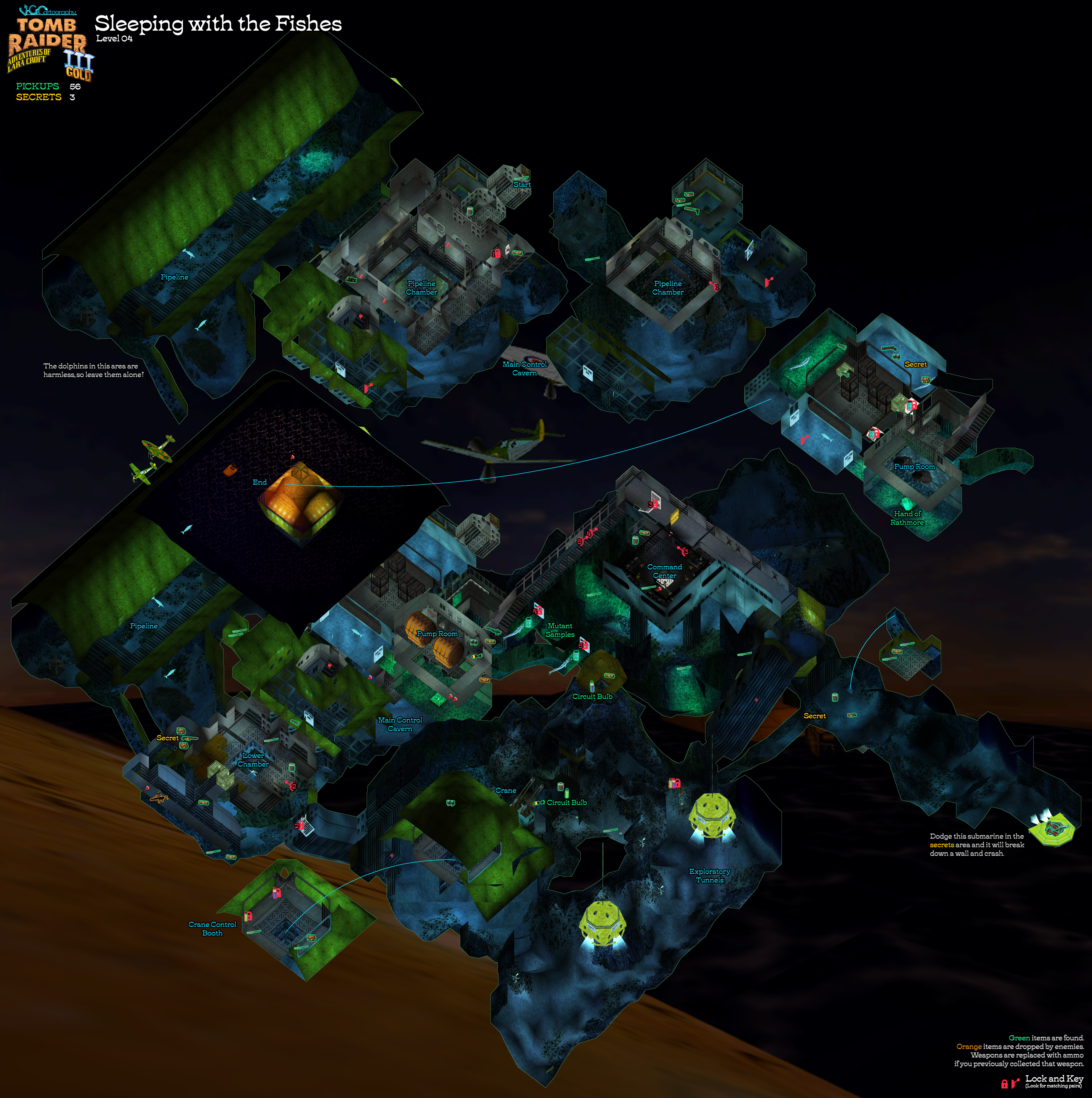 Objectives: Make your way through several underwater areas and locate the Hand of Rathmore artifact. In the third pool, you'll need to find 2 circuit bulbs in order to open the door leading to the fourth pool. There you must locate 2 mutant samples, which will allow you to access the level exit. There are also a few side areas and hidden secrets.