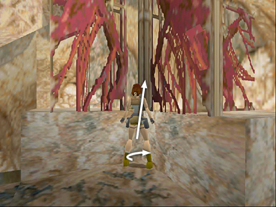 Pivot 45 degrees to the right so she's facing directly into the corner. (You can also reverse the directions, but sidestepping then pivoting will ensure Lara is positioned correctly.) Then jump forward.